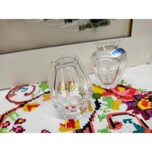 Set of two vintage crystal small vases. One with original sticker by Gorham West Germany. 2.75" tall, no chips or cracks.