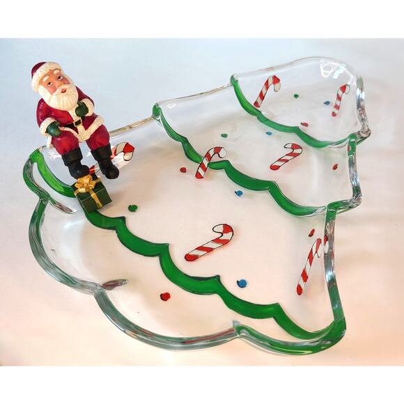 Gorham Winter Follies Candy Dish Christmas Tree Santa Glass Hand Painted