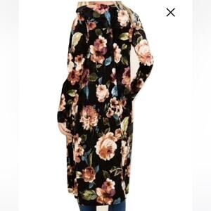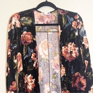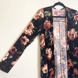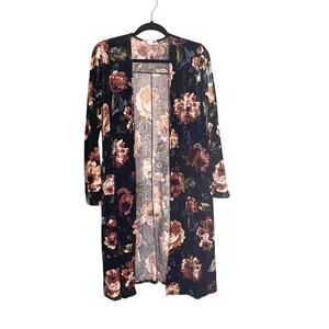 Gorilla & Cat Velvet Stretch Floral Print Open Front Cardigan Kimono Black Large