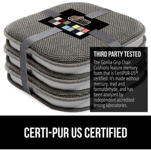 Gorilla Grip Memory Foam Chair Cushions, Comfortable Pads for Dining Room, Kitchen Table, Office Chairs, Stay in Place Backing, Comfortable Microfiber Seat Pad Cushion, Set of 2, 16x16, Gray