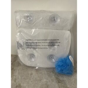 Never used still in packaging with free blue Loofah. Pillow measures 13 x 14 x 4 and is white mesh. Purchased in 2021.