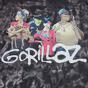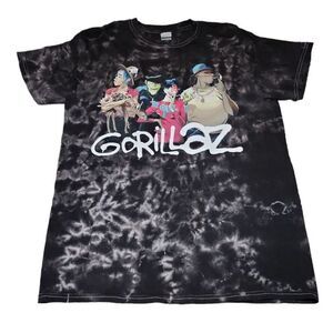 Gorillaz Unisex Tie Dye Band Tee Black Acid Wash M