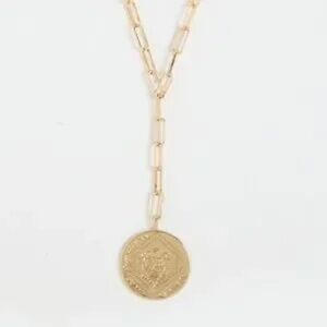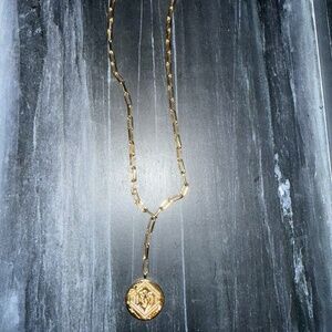 Gorjana Gold Necklace with Paperclip Chain and Medallion. Great condition- no tarnish.