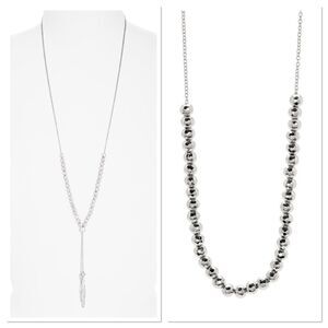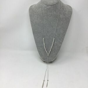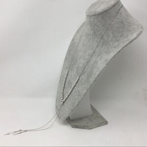 Slide the adjustable bead to wear this gleaming style as a lariat, choker or pendant necklace. Faceted beads and a pair of gently hammered dagger pendants complete the versatile piece.