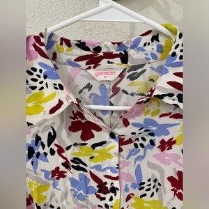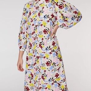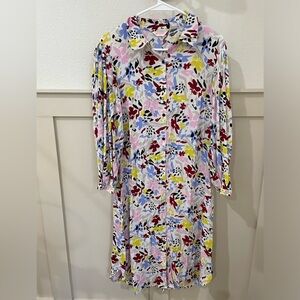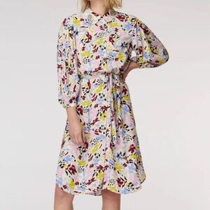 Gorman Multicolor Abstract Colorful Long Sleeve Midi Collared Dress Blue Pink