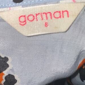 Gorman Printed Dress Short Sleeve Fit and Flare Lightweight Dress Size 8 Blue Black Orange, back zipper GGFL179