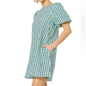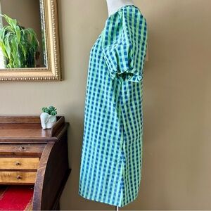 Gorman Stay in Check Mini Dress Puff Sleeve Green Blue Gingham Size 6 NWT