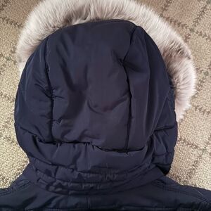 Gorski Navy Blue Apres Ski Parka with hood w fur trim US 10