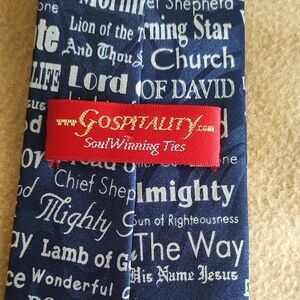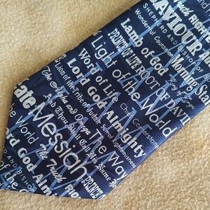 This tie features a captivating pattern of faith quotes on a smooth blue and white fabric, making it an ideal accessory for religious outings or church. The intricate design adds a touch of intellectual flair to a professional outfit if you are a pastor or teacher. Polyester. Bundle three ties for $30!💗