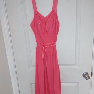 pink red coral nylon vintage lingerie nightgown slip Chemise