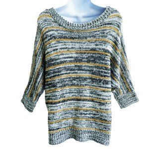 Gossip Girl x Romeo Juliet Couture Knit Sweater. White & Grey with Gold Metallic Lurex. Stripes. Dolman Sleeves. Made in USA. Tagged Size M.