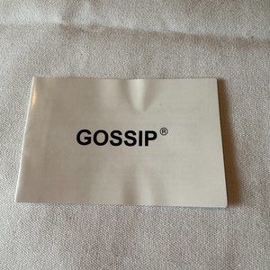 GOSSIP Watch; Goldtone w/Rhinestone Dial; Chronography Style w/3 Sub-Dials: Day, Date & 24 Hour; Link Bracelet Band w/Removeable Extenders - Instructions Included; Instructions for Setting Sub-Dials Included; Original Clamshell Box Included; Brand Card Included; Link Bracelet: 8" End to End; Dial 1.5" Diameter; .25" Deep; Untested; Not Currently Running