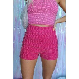 Got A Reputation High Waisted Rhinestone Diamond Shorts in Hot Pink