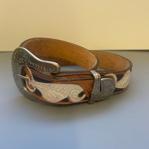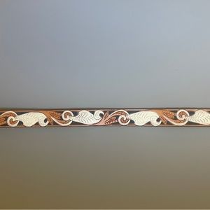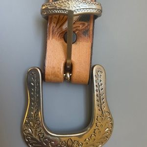 Vintage leather belt- excellent condition. Size small, 33". Made in the USA. Neat leather carving/design. Fun statement belt!