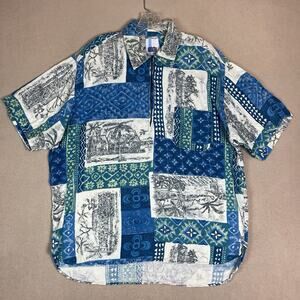 Gotcha Shirt Mens L Multicolor 1/4 Zip Short Sleeve Hawaiian Print Relaxed Polo