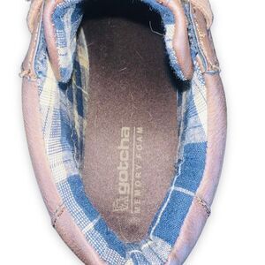 Condition: The Gotcha Finnega Chukka Boots are a stylish and practical choice for any occasion. These boots are in good condition and show minimal signs of wear. They are made with a durable and comfortable construction, featuring a textured outsole for good traction and a cushioned insole for added support. The lace-up closure allows for a secure fit, and the chukka boot design gives them a classic and versatile look. Whether you're dressing up or keeping it casual, the Gotcha Finnega Chukka Boots are a reliable choice that will complement any outfit.