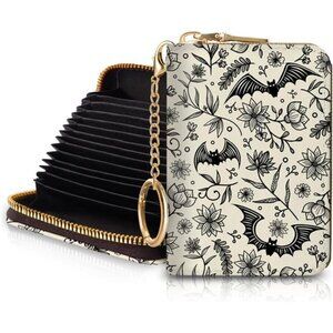 🧿【Unique Design】This goth credit card holder features a bat and flower design, and this one is a gothic style design that expresses the heart of the forever young and always rocking! It will keep you stay fashionable at all times and become your fashion accessories. Use it as an credit card wallet, business card holder, keychain wallet, small wallet or as a compact purse.