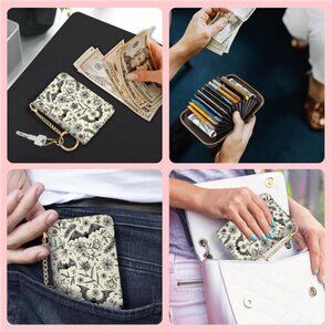 🧿【Awesome Storage】Credit card holder with 12 card slots and 2 pockets for coins or folded bills, each slot can put more than one card in. Whether you're on the go or taking care of business, our women wallet is perfect to hold your cards such as credit card, business card, ID card, shopping cards and more. Small size but large capacity, the keychain wallet fit in your pocket and handbag.