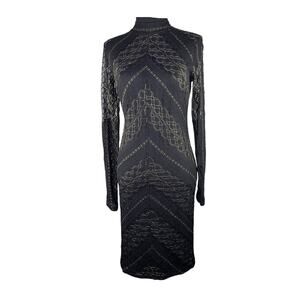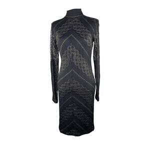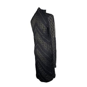 Goth Black Gold Body Con Dress Lined Long Sheer Sleeves Witchy Sz 4