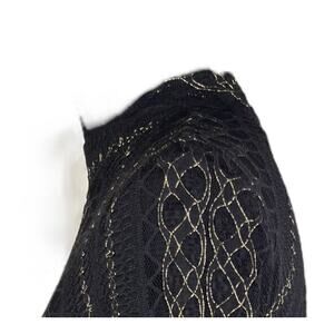 Cato Black Gold Details Body Con Dress Lined Long Sheer Sleeves Witchy Goth Sz 4