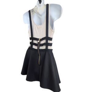 Goth Elastic Cage Black Mini Skater Skirt-Exposed Zip-Suspenders-S-Punk-Grunge By Urban CoCo