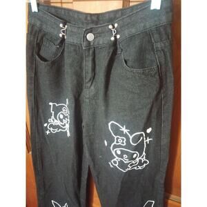 Goth Jeans Japanese Black Baggy Pants Wmn Sz 4 Punk Kitty Adjustable Waist 28-30. In great pre-owned condition