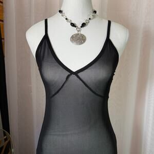 Goth Lingerie Aesthetic Sheer Mesh Double Leg Slit Maxi Dress Size Small