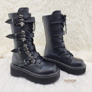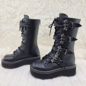 Goth Platform Combat Boots Bat Buckle Straps Emily 322