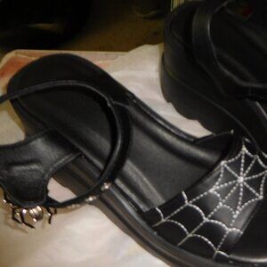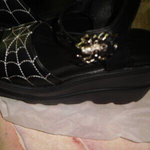 womens black chunky wedge heel 3.14''/Platform,1.96''