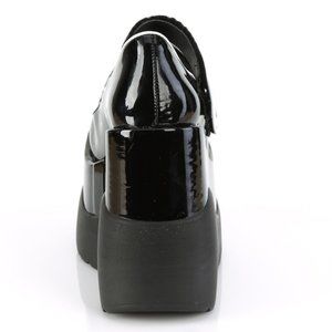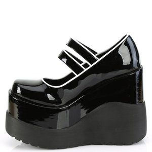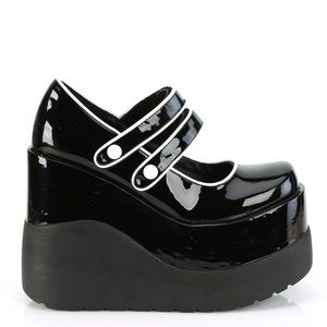 5" Wedge Platform Maryjane Gothic Shoes. Double Hook and Loop Straps. Contrast Piping and Buttons.