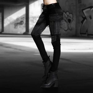 Elevate your cyberpunk look with our Stretchy Denim Patch Punk Pencil Pants, the ultimate fusion of style and functionality. These pants feature edgy leg pockets that not only add flair but also provide practical storage for your essentials.