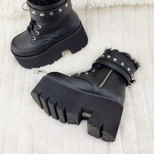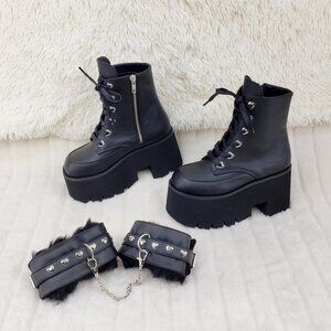 Goth Punk Platform Ankle Boots Furry Chain Cuff 57