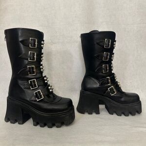 Goth Punk Studded Stack Heel Boots EU 37 = US women's size 6.5 Working buckles