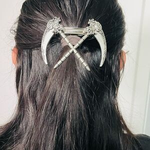 Goth Reaper Scythe Hair Clip Accessory, Unique, Silver, New