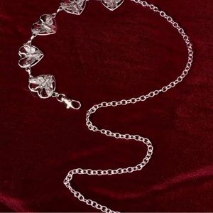 The silver metal link body chain belt is made from good quality silver plated alloy,brilliant in color,sturdy and durable in use, don’t easily fade. Highly polished finishing and strict metal electroplating craft create super smooth and glossy surface, comfortable to wear. The lobster clasp of chain belt is solid and easy to use. Fits Small to large waist size Approximate total length is 42” Moth 1.5” each #vintage #gothic #link chain #waist chain #goth heart