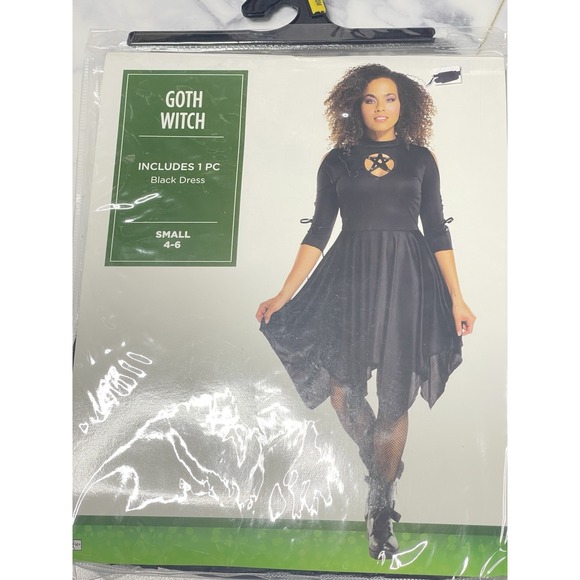 This Gothic Witch Adult Dress in size Medium (8/10) is perfect for Halloween or dress-up occasions. The dress, by Amscan, is all-black with a style and theme that embodies a classic witch look. Made for women, this regular-sized dress is sure to make a statement and capture the essence of a mystical, enchanting character.