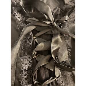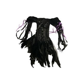 Goth Witch Fairy Grunge Corset Lace-Up Black Velvet Tattered Dress Small