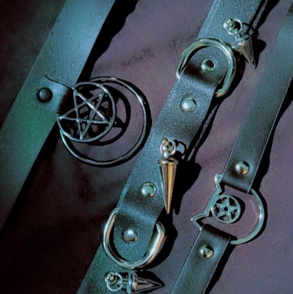 lot of 3, high quality, brand new, goth/alternative Collars. all 3 are new, with the exception of I only wore the circular pentagram one once. I never got a chance the wear the others. my bf ordered me a special collar and I have 2 other ones that are customized, so I rotate between those 3. these Collars are super cute, but I'll never wear them since I always wear my customized ones. I'll also post each of these for sale individually for anyone who just wants to purchase only one of the 3.