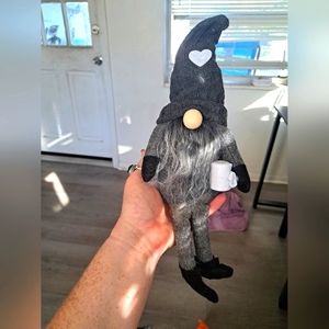 small goth gnomes. the butt/bottom is weighted so he can sit on the edge of a shelve or the like. he's holding a coffee mug and has a white heart on his hat. I have multiple of the same one. if you want more then one message me in bundle if it won't let you order more then one in a bundle. if not I will make multiple posts of it for you. I have 4 of these.