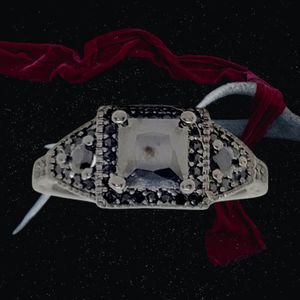 Black Square Center 4 prong set and Halo pave set accent Black Diamond Simulants.