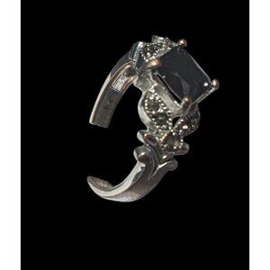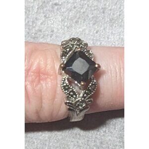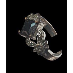 Gothic Art Deco Black Gemmed And Marcasite Ring Size 7 1/4