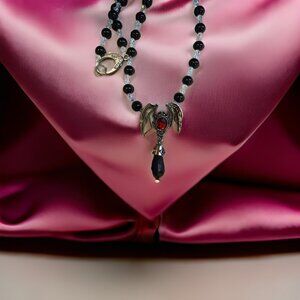 Gothic Bat wings /Dragon/onyx Necklace 20 inches handmade