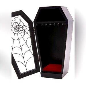 Elegant coffin-shaped jewelry box. Gothic design with intricate details. Perfect for adding a dark touch to your decor.