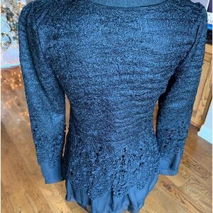 Beautiful black gothic Victorian pullover blouse unique weave textured lining with sheer hemline elastic waist (tag info missing) great preloved condition smoke/pet free home
