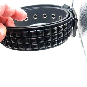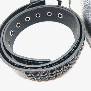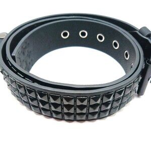 New lot of 2 items gothic 3 rows of black studs belt and one matching black studded bracelet. The bracelet has 12 black square studs on it - bracelet measures 8.5 inches long and 1/2 inches inch wide overall.