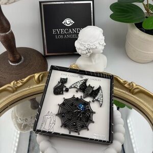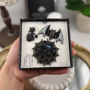 #HalloweenJewelry #HalloweenPins #BroochSet #SpiderWebBrooch #BatBrooch #CatBrooch #SpookyStyle #HalloweenAccessories #GothFashion #StatementJewelry
