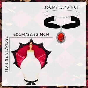 Features: This dramatic Gothic collar features intricate lace details with a bold red pendant on a black choker, creating a striking vampire or Victorian-inspired look. The stand-up design adds a haunting, regal silhouette that’s perfect for Halloween or themed events. Comfortable and adjustable to keep your costume looking flawless all night.