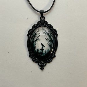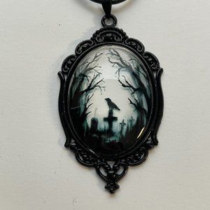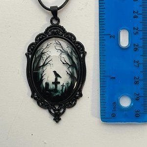 Gothic Crow Raven Necklace Cemetery Pendant Halloween Goth Pagan Victorian Jewel