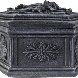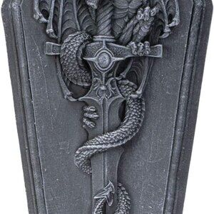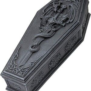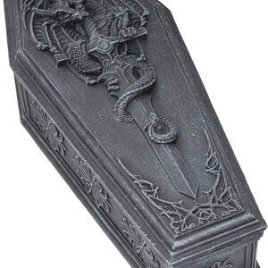 Item Dimensions L X W X H: 10"l X 4.5"w X 4"h Capacity: 10 Pounds Item Weight: 1.86 Pounds Number Of Items: 1 Storage Volume: 1.92 Number Of Compartments: 1 Unit Count: 1 Count Package Quantity: 1 Color: Gray Style Name: Gothic Shape: Hexagonal Other Special Features Of The Product: This Is A Decorative Box For Keepsakes, Jewelry, And Other Knick Knacks. Opening Mechanism: Lift-off Lid Recommended Uses For Product: Décor Upc: 804112092850 Item Height: 2.5 Inches Material Type: Polyresin Material: Polyresin Special Feature: This Is A Decorative Box For Keepsakes, Jewelry, And Other Knick Knacks. Style: Gothic Beautifully sculpted coffin box with a relief dragon sword sculpted on the lid of the keepsake box Made of high quality composite resin material and hand painted, the wall plaque measures 4" tall, 10" long and 4.5" wide and weighs around 2 lbs A beautiful dragon wrapping itself around a sword sits atop a gothic coffin lid, keeping a close guard over the treasures hidden within. Makes an enchanting addition to any home or office that makes use of Medieval and Gothic d cor. This piece of artwork is perfect gift for any fantasy dragon collector. This is a decorative box for keepsakes, jewelry, and other knick knacks Our highly skilled craftmanship is able to transform these devilish artwork into collectible figurine for display in your homes or office This Gothic Dragon Coffin Box measures approximately 4" tall, 10" long and 4.5" wide. Made of high quality polyresin, hand