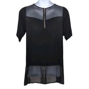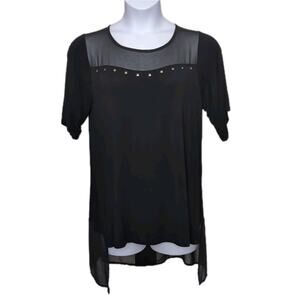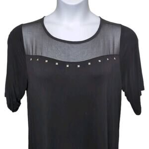 Gothic Long Top Sheer Detail Womens Size XL Black Studs Back Zip Goth Y2K READ